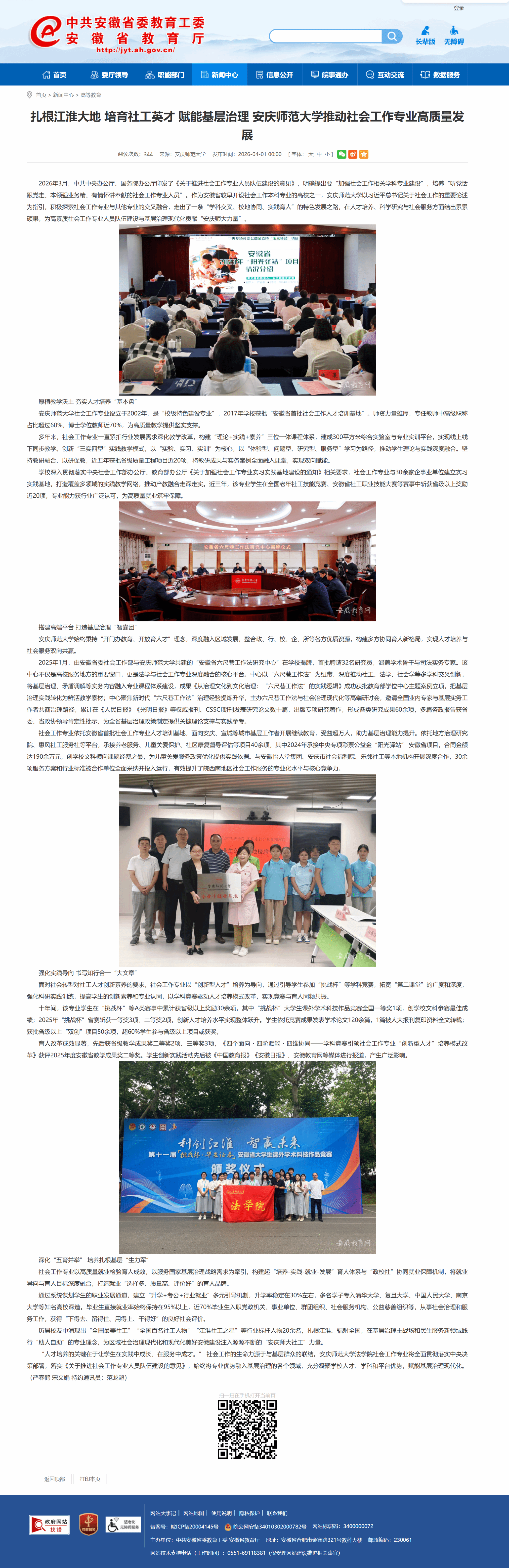 来源:【安徽教育网】扎根江淮大地 培育社工英才 赋能基层治理 37000cm威尼斯推动社会工作专业高质量发展https://jyt.ah.gov.cn/xwzx/gdjy/40785930.html