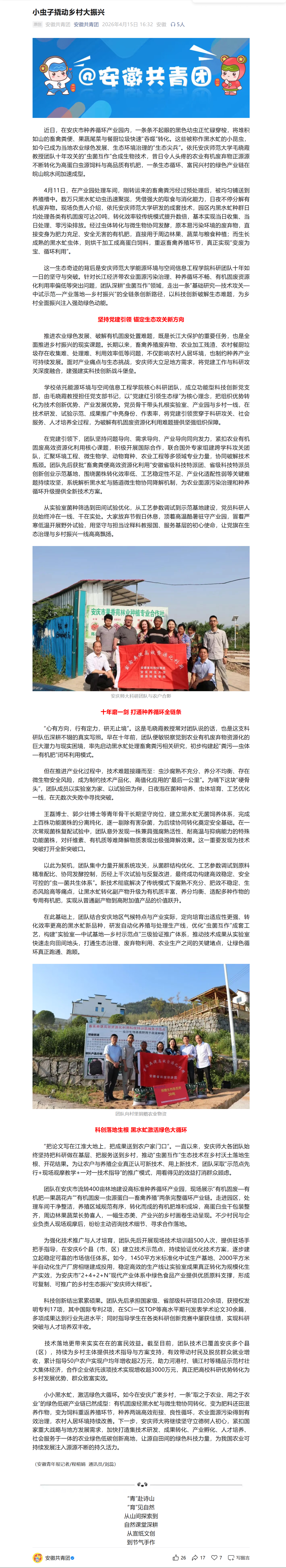 下一篇:安徽青年报:小虫子撬动乡村大振兴