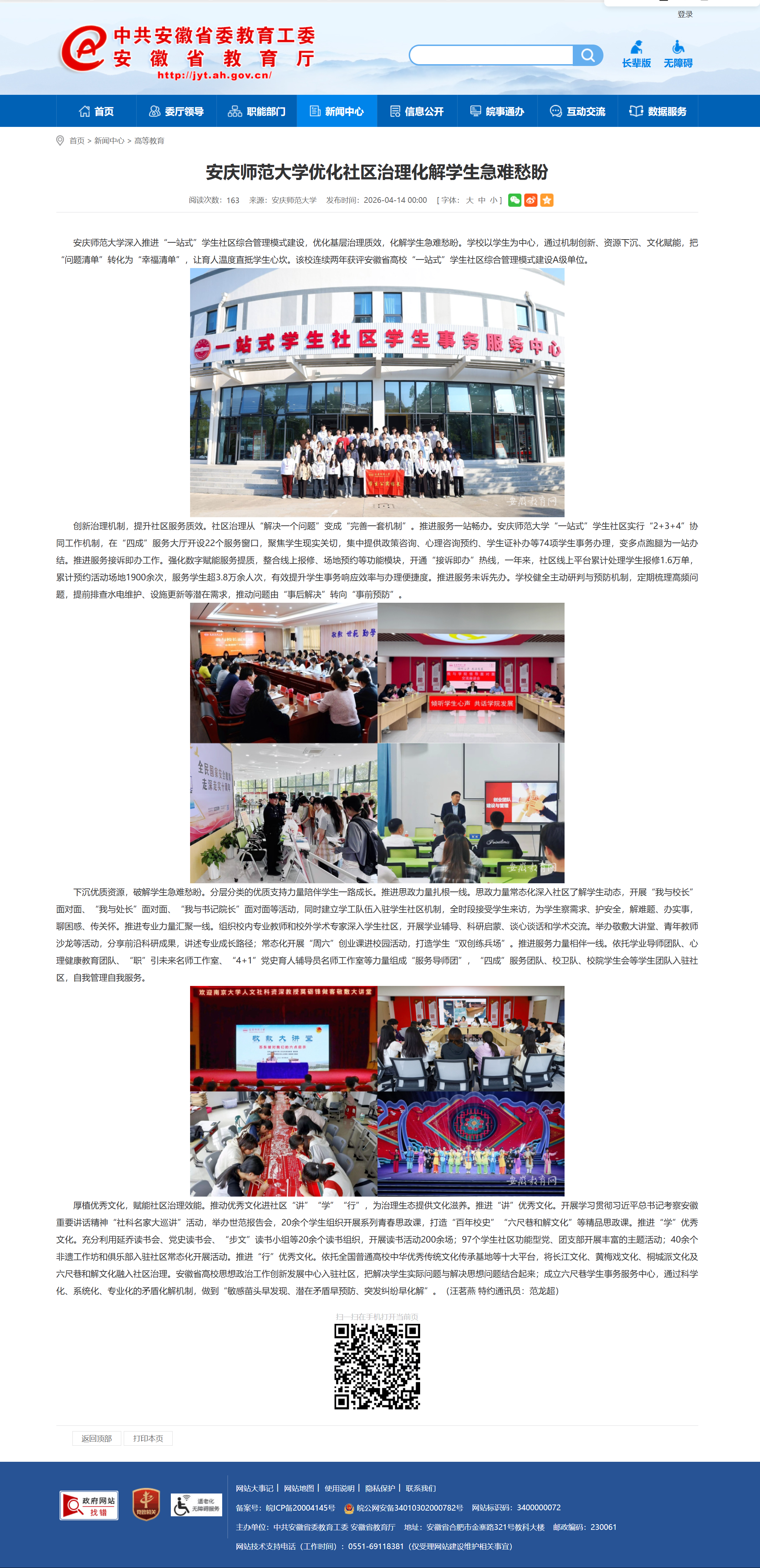 安徽教育网:37000cm威尼斯优化社区治理化解学生急难愁盼