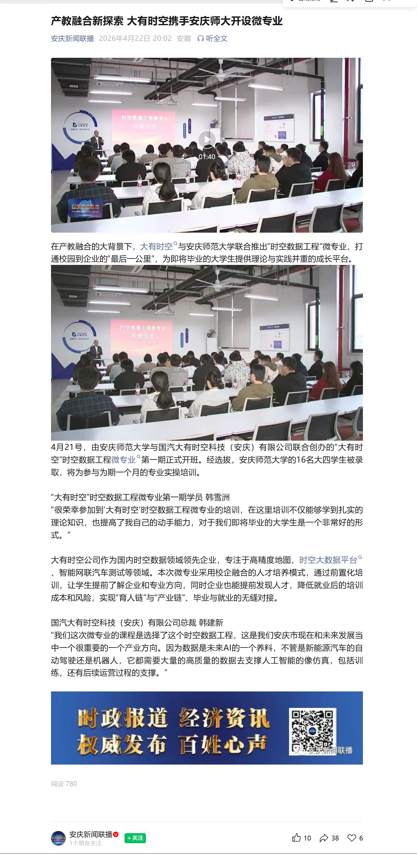 安庆新闻联播:产教融合新探索 大有时空携手安庆师大开设微专业