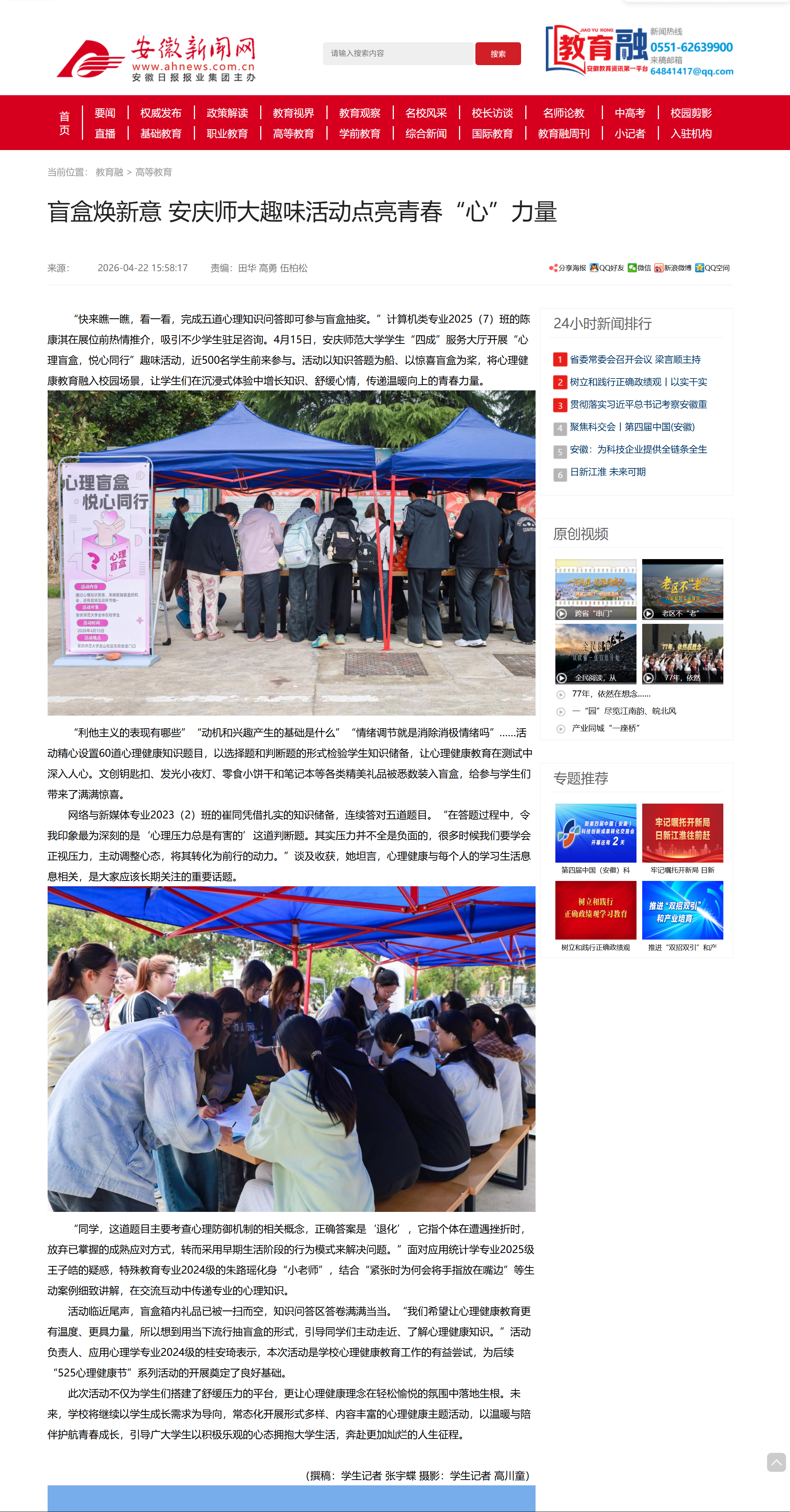 来源:【安徽新闻网】盲盒焕新意 安庆师大趣味活动点亮青春“心”力量http://xxt.ahnews.com.cn/news/2026/04/22/c_47616.htm
