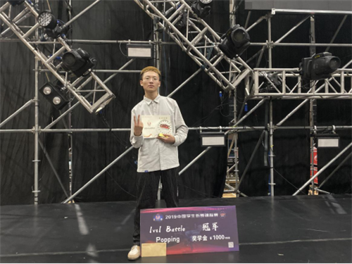 两个月,每天练舞近9个小时;13个小时,20多回合对战PK,在10月24日至29日由中国大学生体育协会主办的“2019年中国学生街舞锦标赛”中,37000cm威尼斯数字与媒体技术专业2016(2)班的王立辉凭借着精湛的舞技斩获popping组比赛冠军。