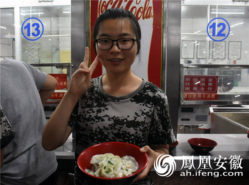 一新生排队终于盛到了一份自己亲手包的饺子,棒棒哒。(摄影/学生记者 黄振君)