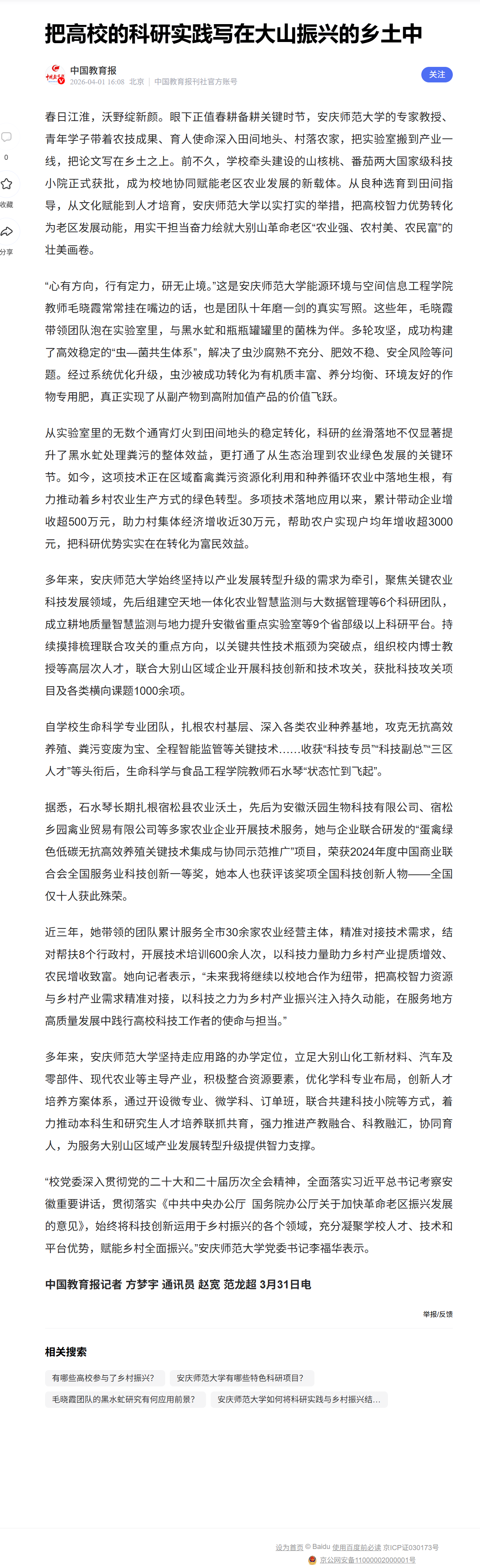 来源:【中国教育报】把高校的科研实践写在大山振兴的乡土中https://baijiahao.baidu.com/s?id=1861254807661838182&wfr=spider&for=pc